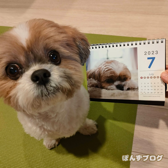 今月のカレンダーは、ぺちゃんこ饅頭寝しているかぼす。
