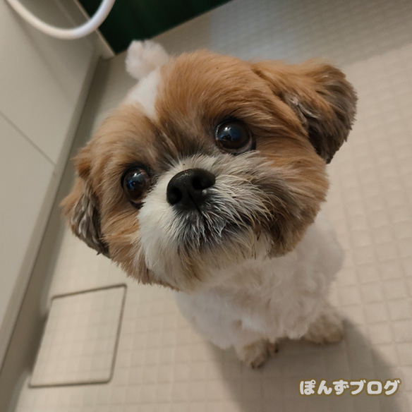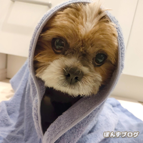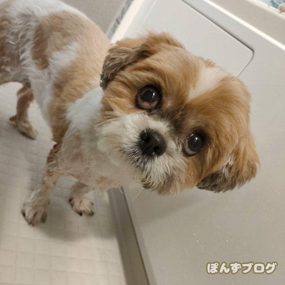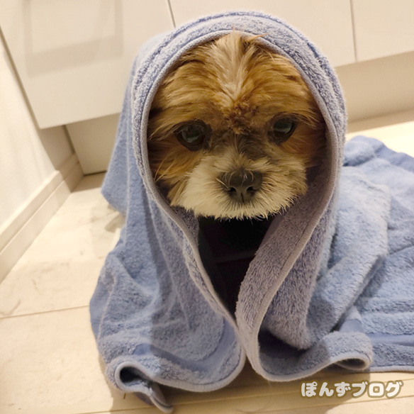 何度もシャンプーしていますが、その都度不安そうにするかぼす。