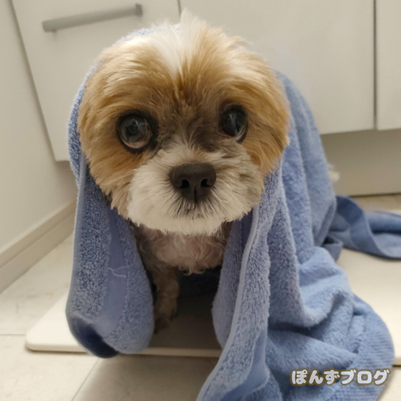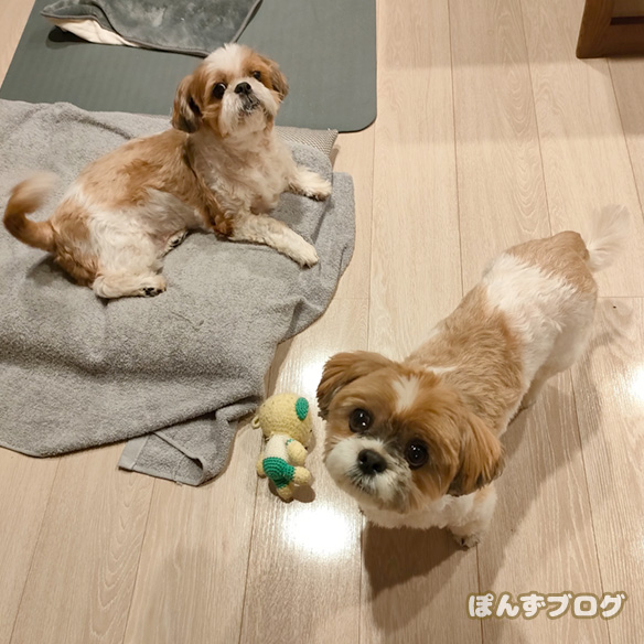身体を乾かし終わると、たたたーっとぽんず母さんの元へかけよる、かぼす。