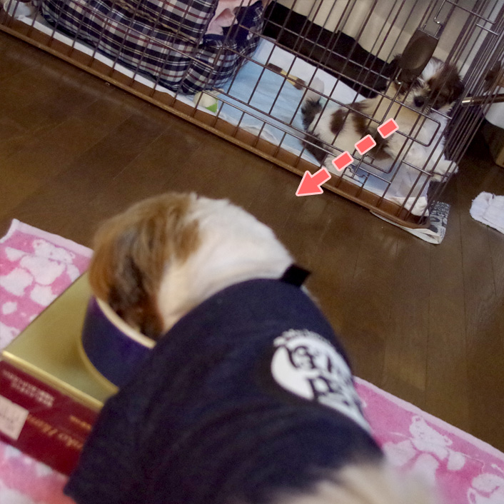 隣のぽんず母さんのご飯まで食べようとしていたので、慌てて止めました。