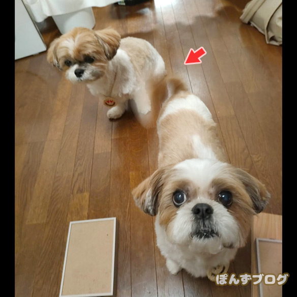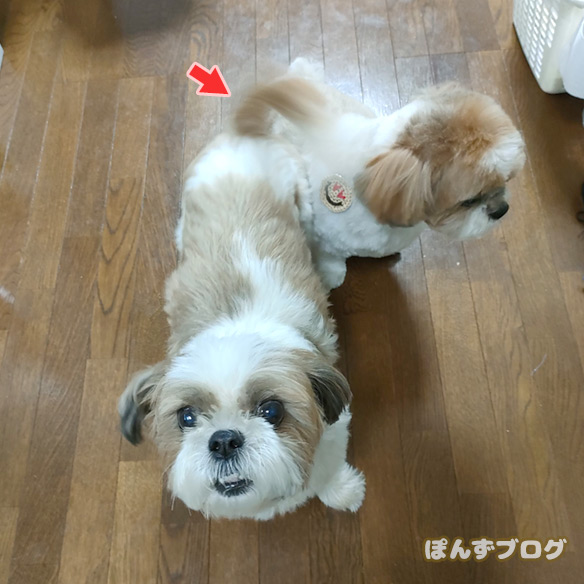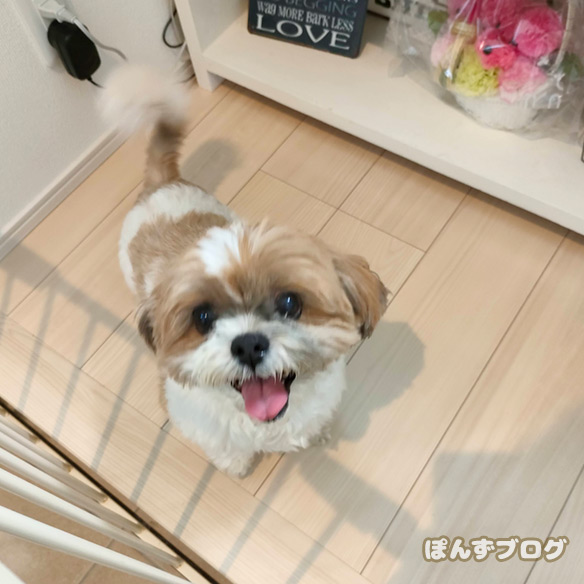 家に帰ってから、ぽんず母さんのしっぽアタックをくらっていました。