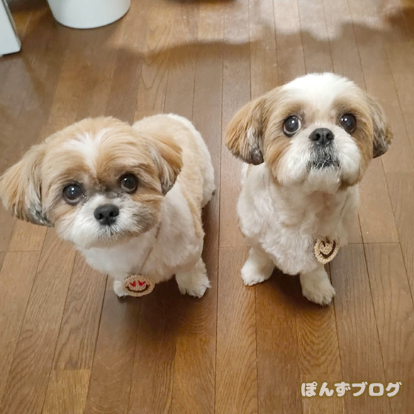 シーズーは毛が長いからどうしても蒸してしまいますよね。今日はかなり涼しくなって、ぽんずもかぼすも、いっぱい歩けましたよ^^