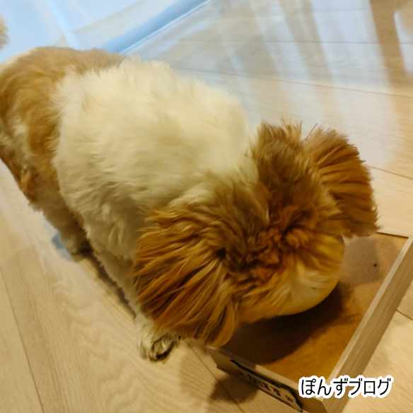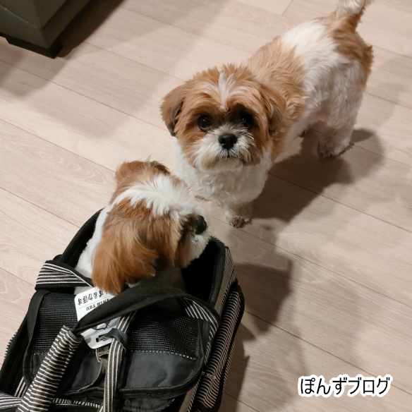今日はそれ程嫌がっていない、ぽんず。