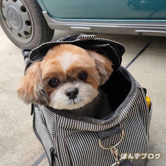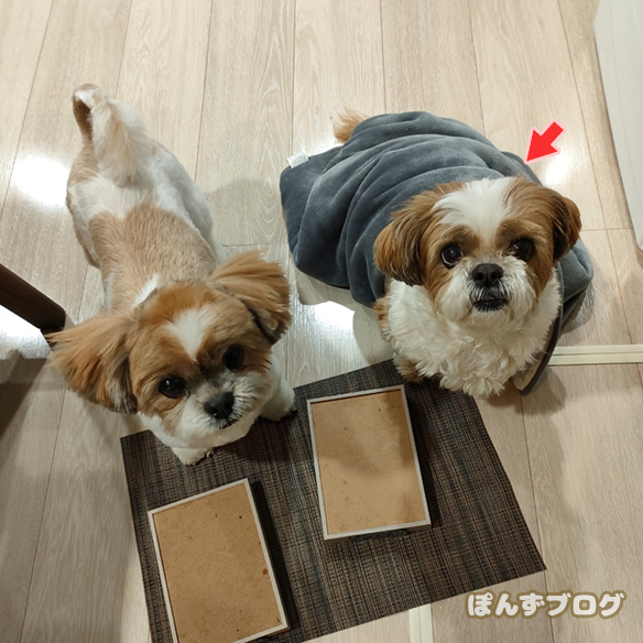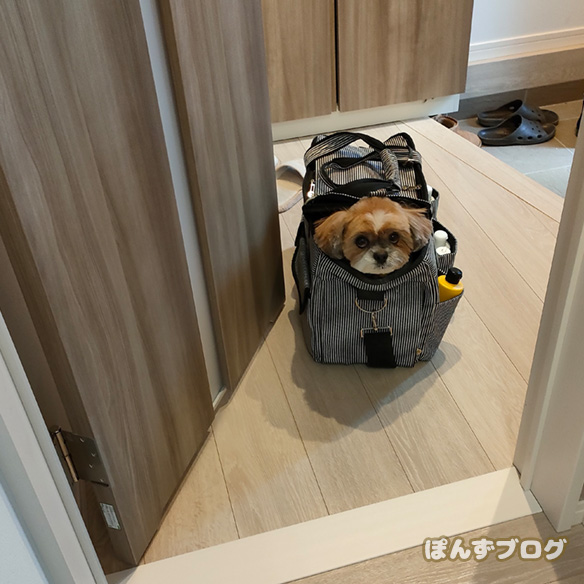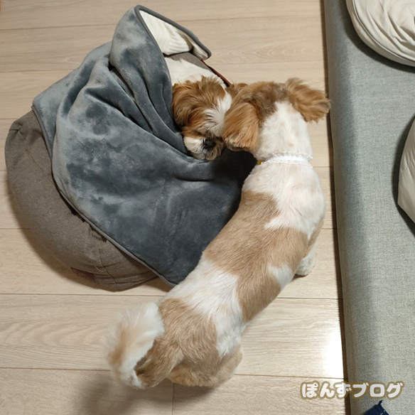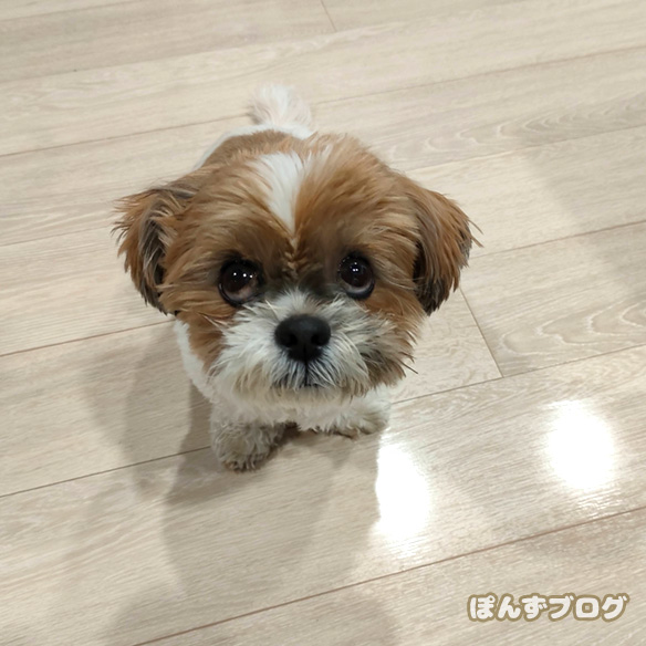 帰ってきて、ぽんず母さんにただいまの挨拶をする、かぼす。