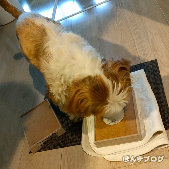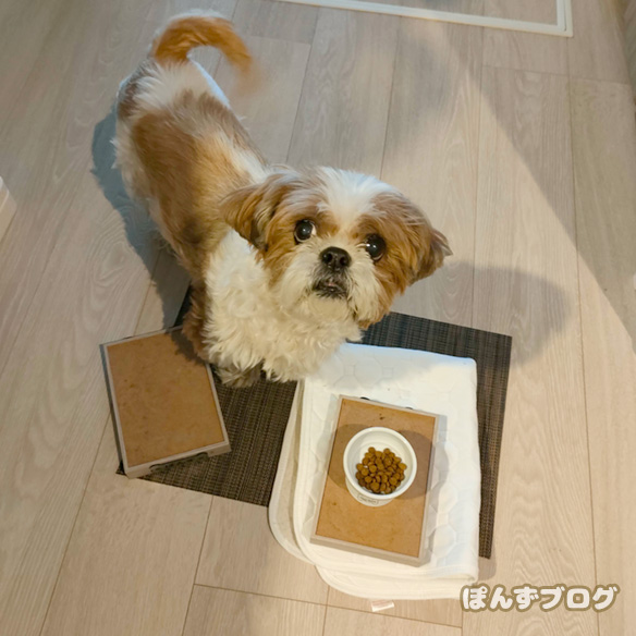 かぼすの居ない間、ぽんずはひとりおやつタイム。