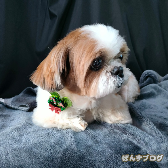 ぽんずもクリスマスの飾りをつけてもらえました🎄