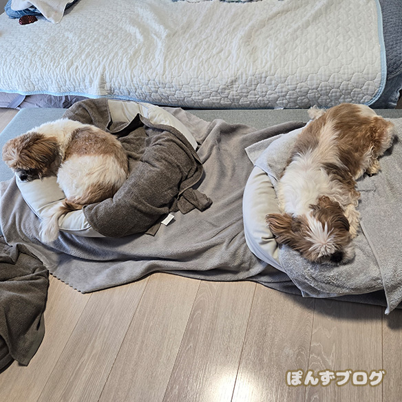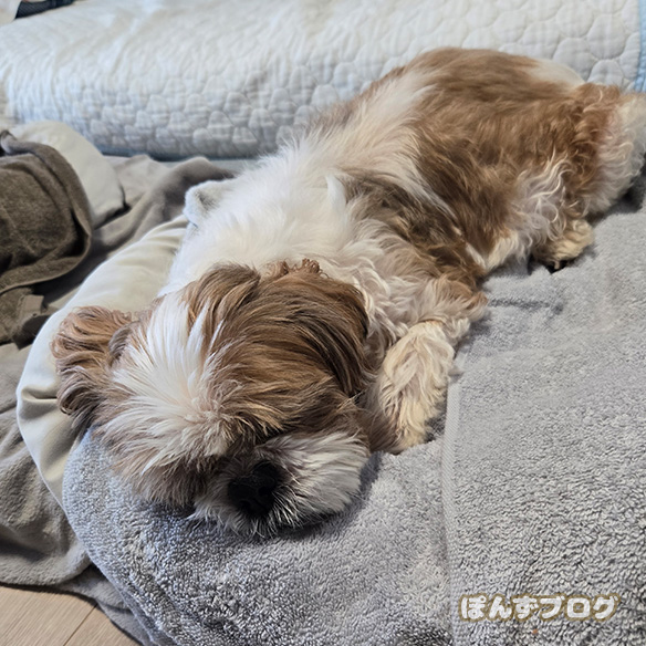 ぐっすりもふ寝してしまった、ぽんず。