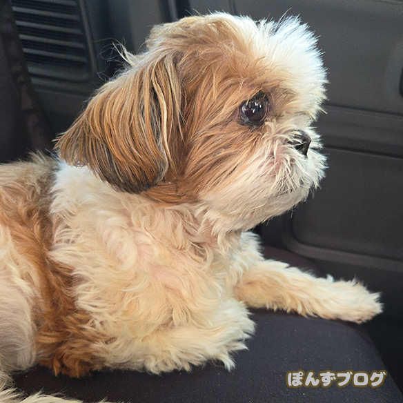 それでも、しぶしぶながら車に乗ってくれるぽんず。