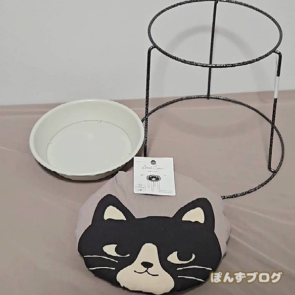 スタンドの上に植木鉢の受け皿を置いて、
