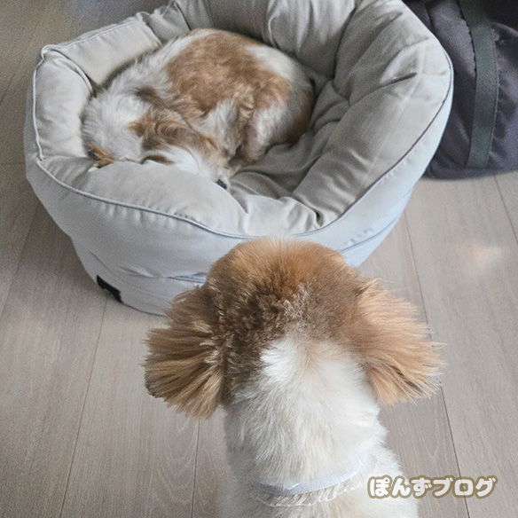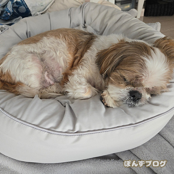 かぼすのカット中、ぐっすりと寝ていたぽんず母さん。