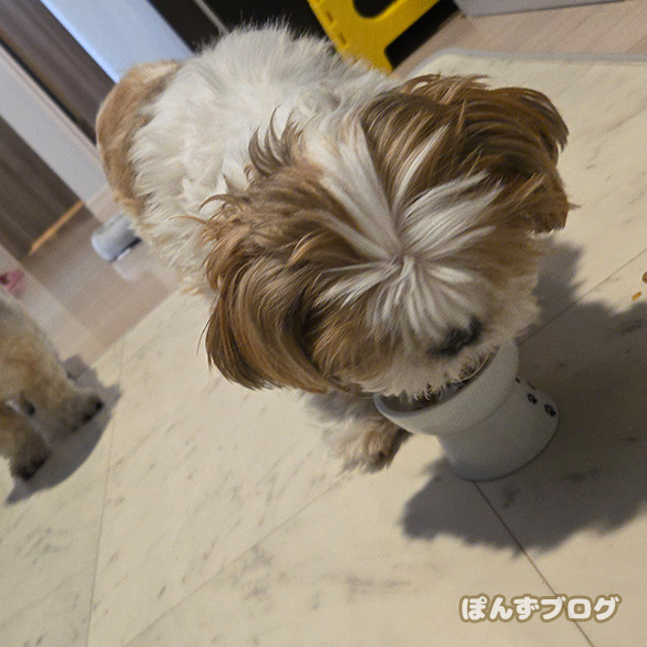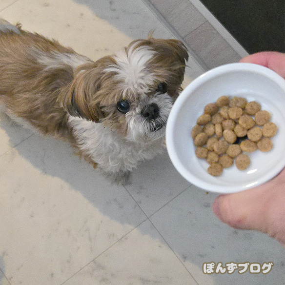 おやつの時間はドッグフードをふやかさず、ササミなしでも食べてくれました。