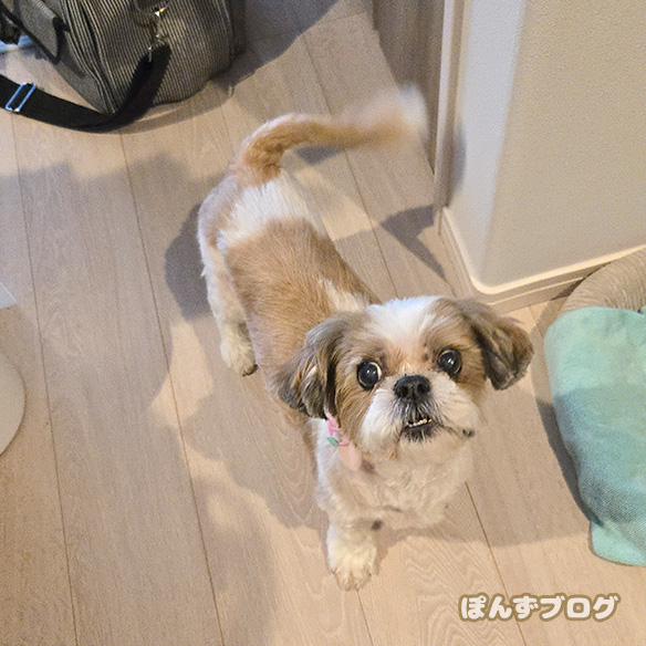 そして、1時間半後に帰ってきたぽんずが、こちら。