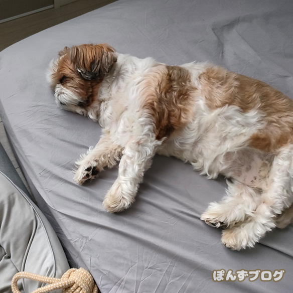 かぼすも、ぐっすり寝ている時は掻いたり舐めたりしないのは、救いです😴