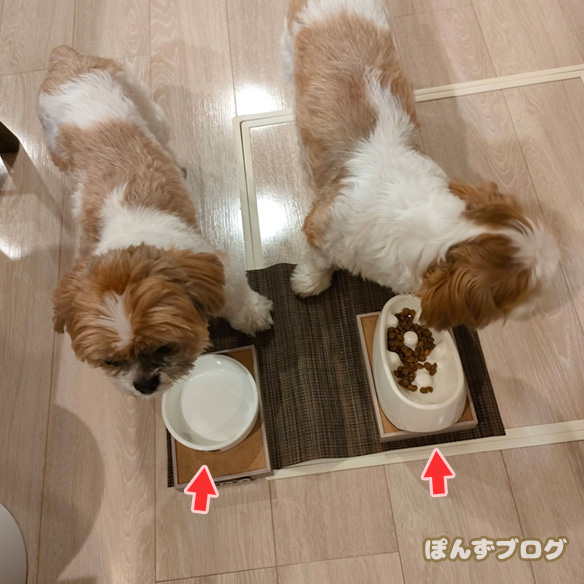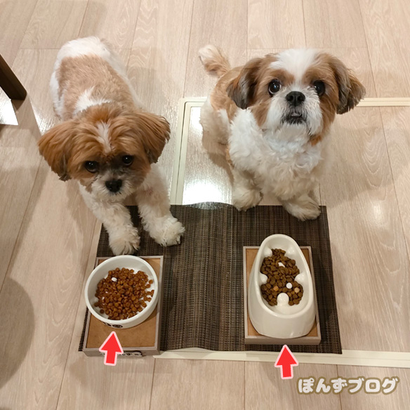 ご飯を早食いするのでぽんずには『食べにくい』器で出してきいたのですが。