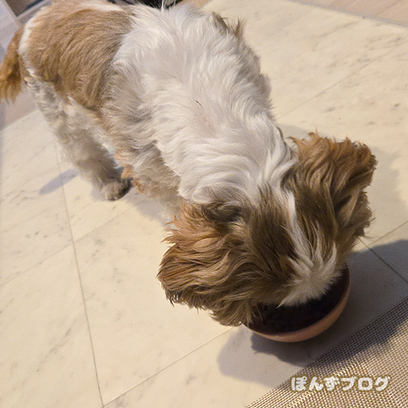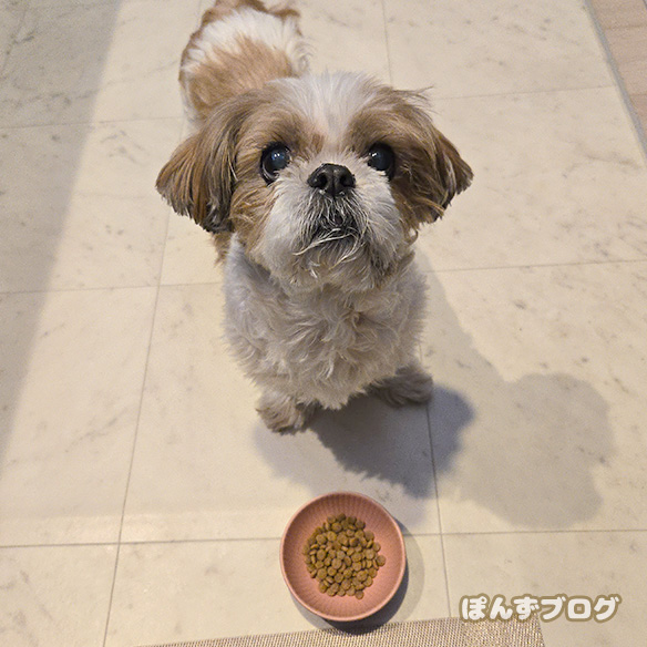 そのぽんずが、珍しく朝のドッグフードを半分も残していました。