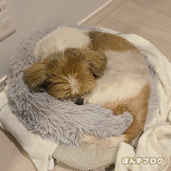 ぽんず、朝6時に起きて少量のご飯を食べて残すわけですが