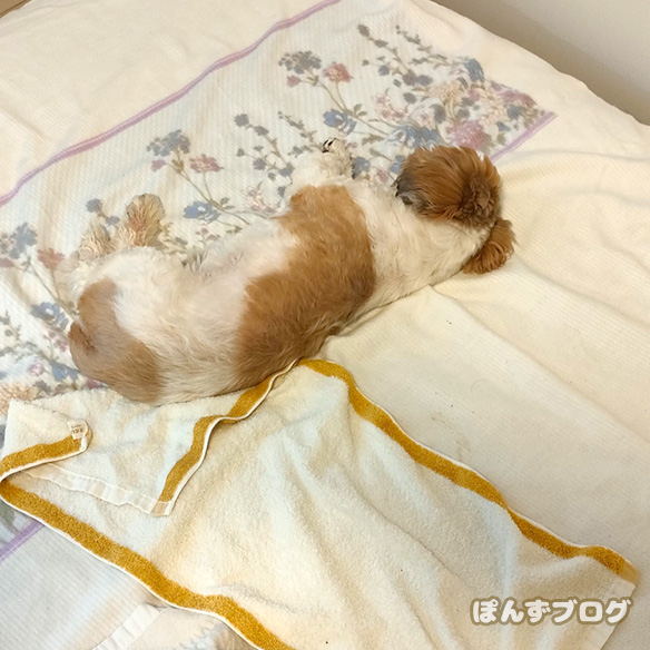 上の写真は帰ってきて疲れて寝てるところです。