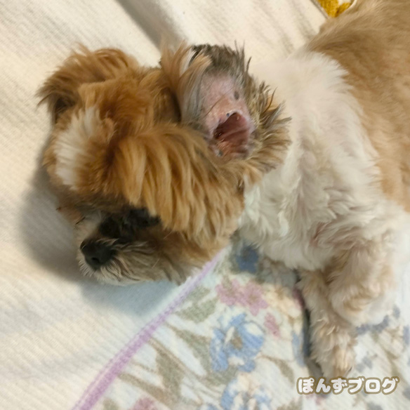 ぽんずの耳は、ほんとにピンク色で綺麗です。
