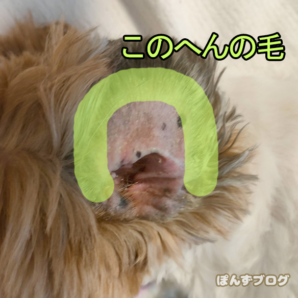 この耳の内側の毛も可能な限りカットしてもらうように