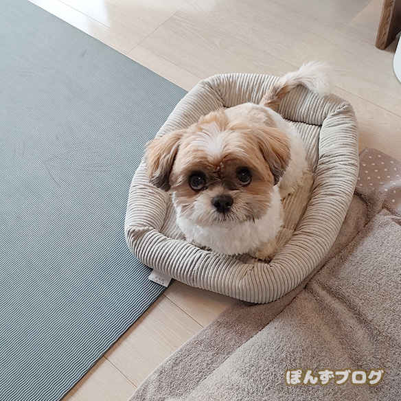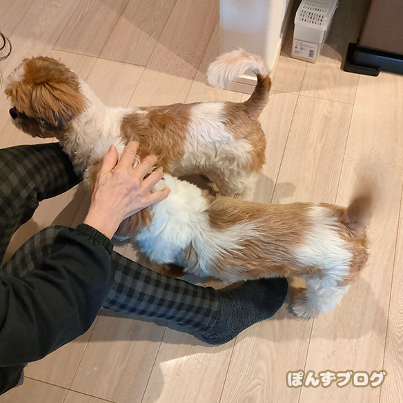 しっぽを振って満足そうな、ぽんず。