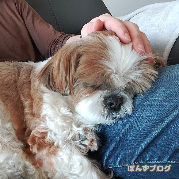 帰ってから疲れたのか、ぐっすりのぽんず。