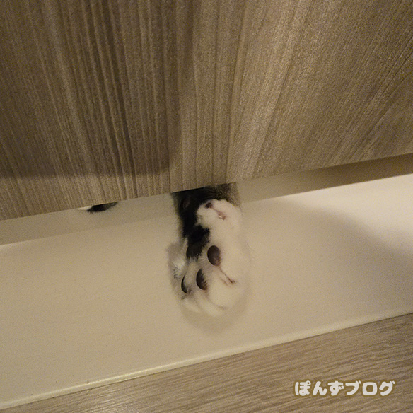 ドアの隙間から、もふ手をひょいひょい出してこっち側に来たそうにしていました。