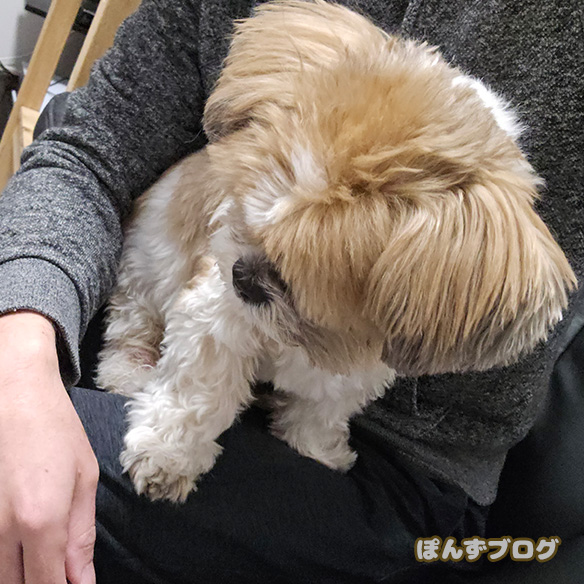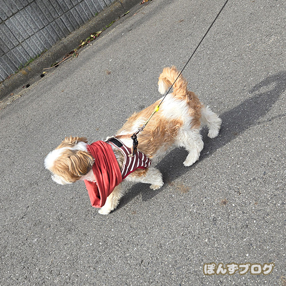 服を着せるのは大変でぽんずも嫌がりますが、マフラーだとずっと着けてられるのでいいですね