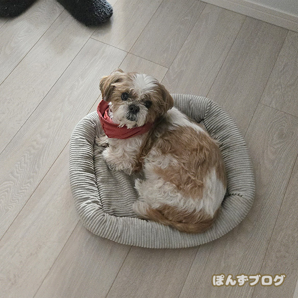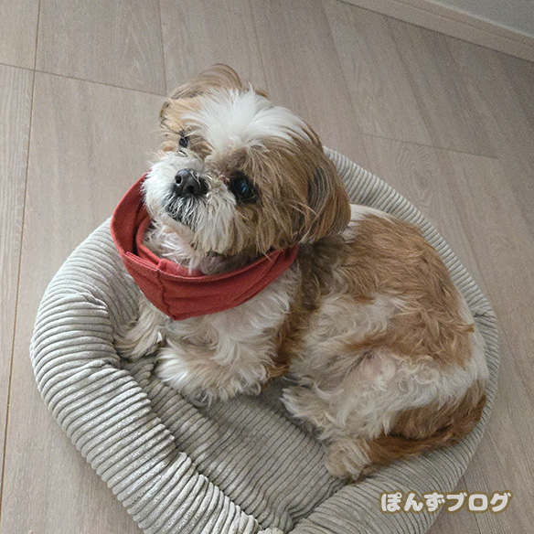 昨日は病院で、ネブライザーをあててもらったぽんず。