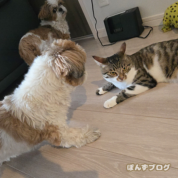 はっさくが猫パンチなどをしかけると嫌がってどこかに行ってしまいますが