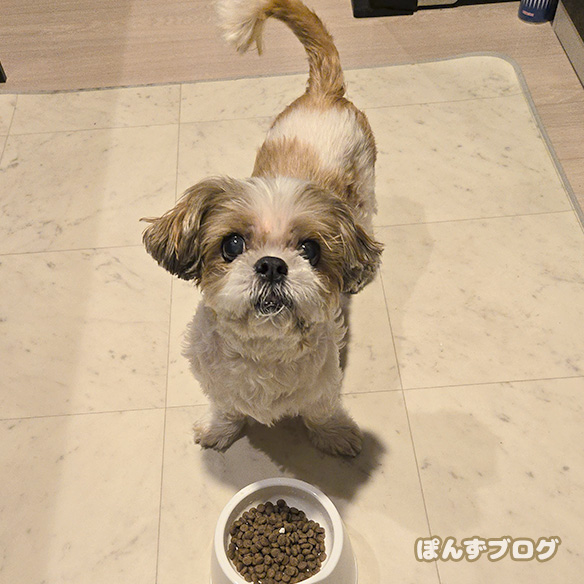 少しドッグフードに水分が混ざっています。