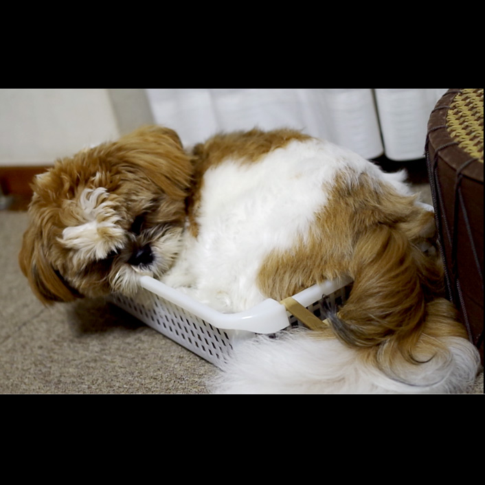 やっぱり狭いところに収まりたい欲求がわんこにはあるのでしょうかね・・・。