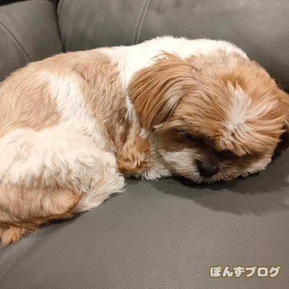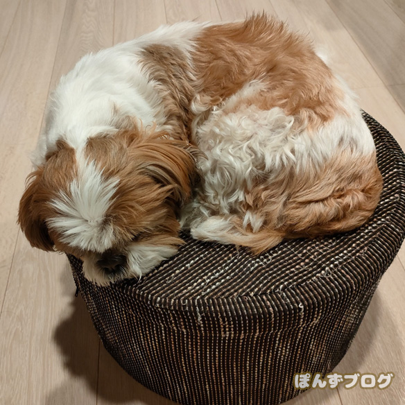 家に帰ると、丸くなって寝ていたぽんず。