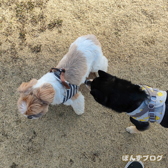 お友達わんこが近づいて来た時の固まり方がそれまでとギャップがありすぎてとっても可笑しいですよ笑
