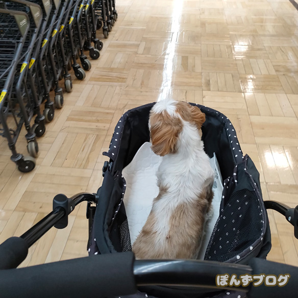 さて、カインズではとっても静かにカートの中で座っていたぽんずでしたが・・・