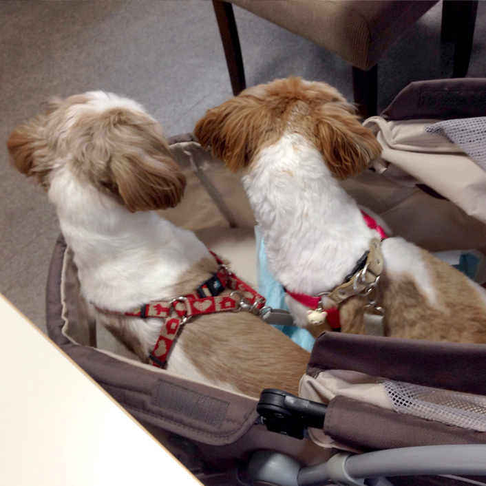 そのシーズーの子が、幼い頃のぽんずにそっくりで、しかも飼い主さんの近くで『ぽんずのポーズ』しているもんだから、親近感わいちゃいました。
