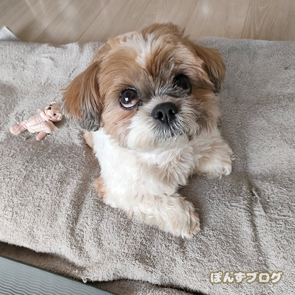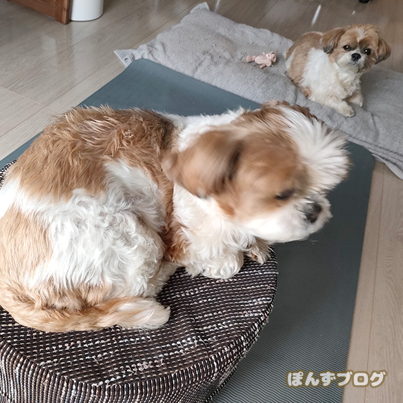 昼間、『わん!わん!』と吠えるぽんず。